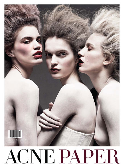 Acne. With a fresh view and sense about published fashion, the magazine brings together art, culture and fashion mixing through the pages high and popular culture. Inspirational themes and quirky photo shoots deliver the novelty style of the paper.